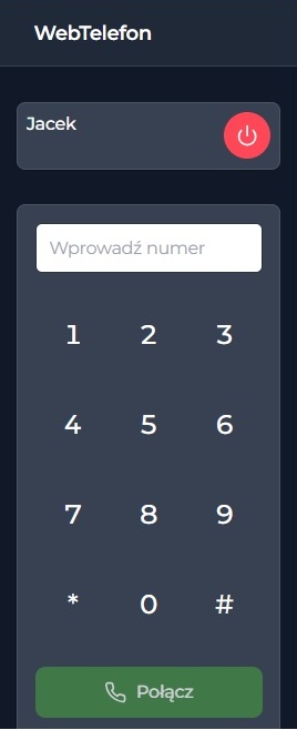 W panelu abonenckim dostępny jest WebTelefon, czyli wbudowany klient SIP działający bezpośrednio w przeglądarce internetowej (technologia WebRTC). Umożliwia wykonywanie i odbieranie połączeń bez instalowania dodatkowego oprogramowania.